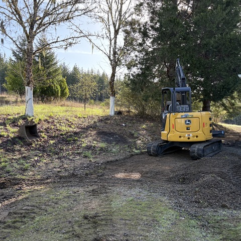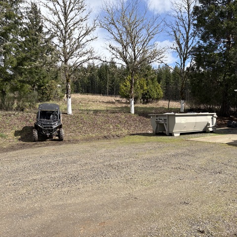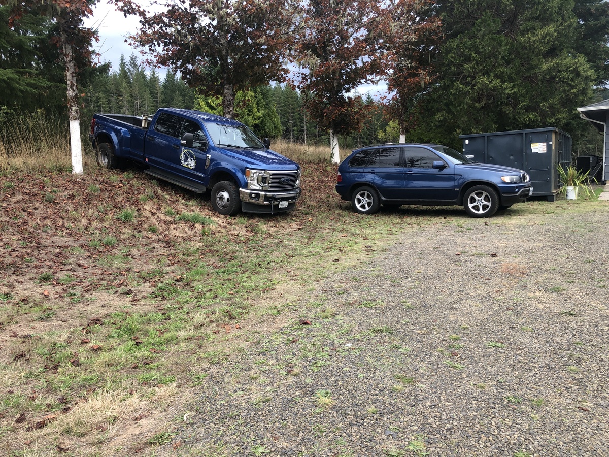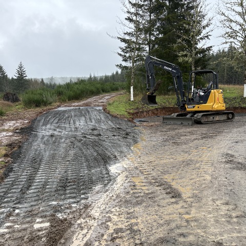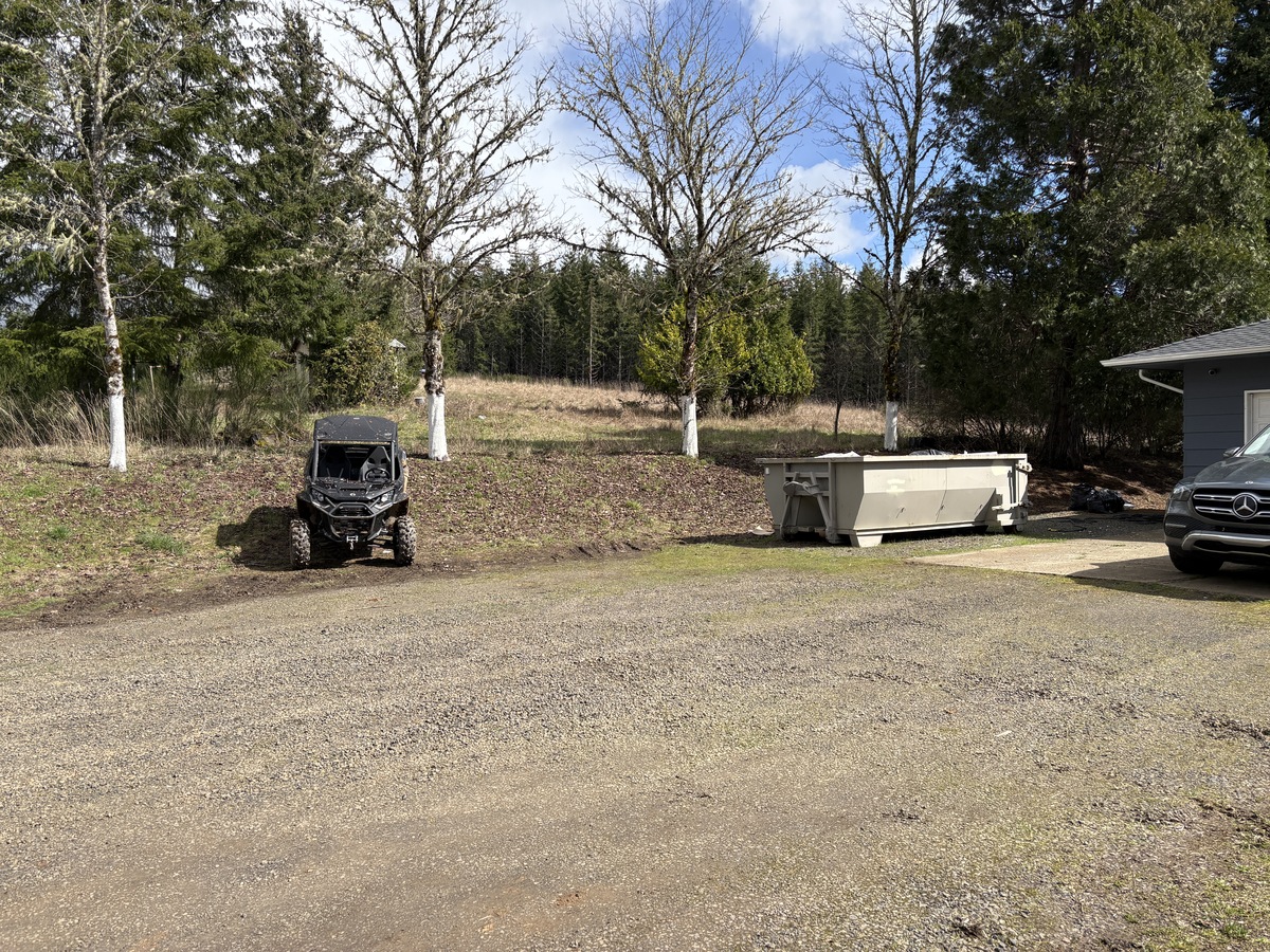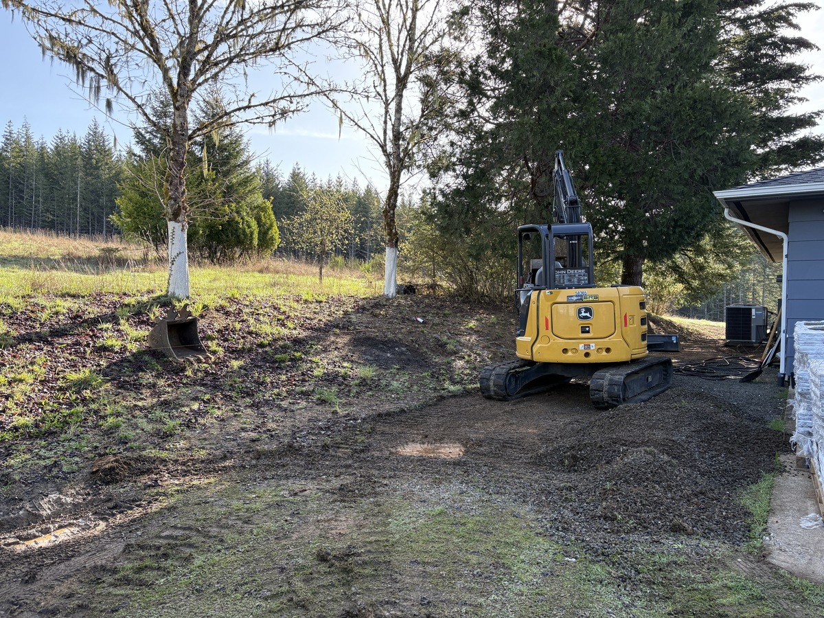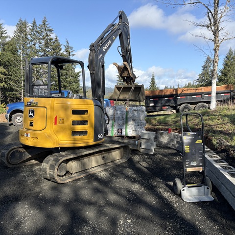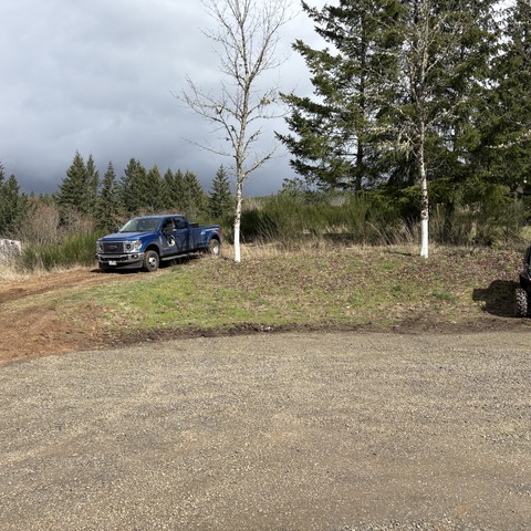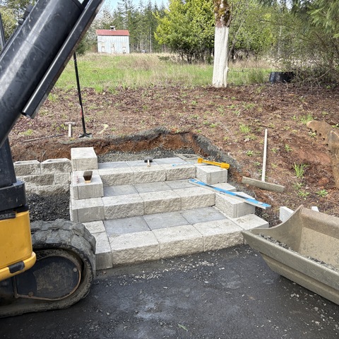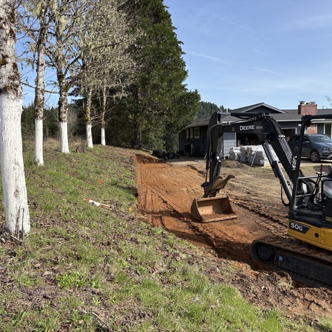 For this project, the homeowner wanted to reclaim some usable parking space and eliminate the soggy muddy mess at the bottom of the slope. So we started with a clean cut to bring the grade to a good sub grade below the driveway elevation. Applied a road base fabric to keep the mud from pushing up through the rock. Then we added a base layer of rock as well as a retaining wall to make the edge of the hillside look clean and keep from eroding. I also added a stairway to match the retaining wall blocks used for a smooth access to the upper level of the yard. On the side of the driveway we extended the road up a short way to create a turn around and also add more parking area.